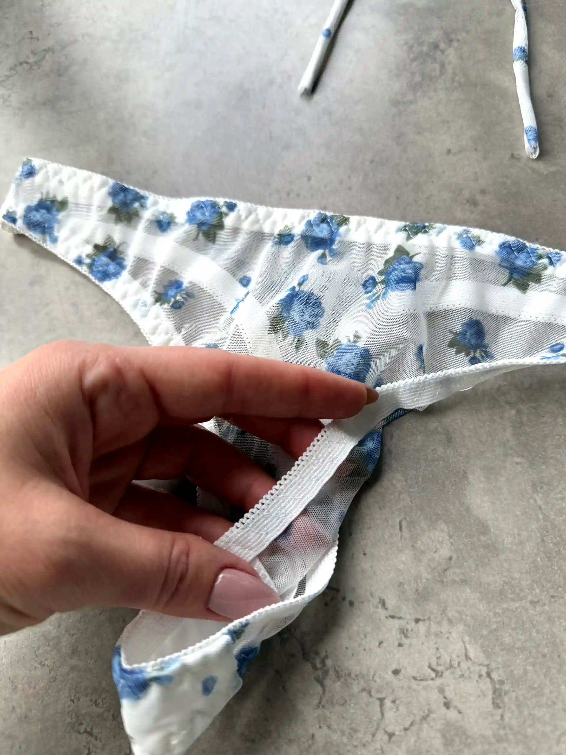 Комплект жіночої білизни – бюстгальтер з квітковим принтом – трусики стрінги з сітки