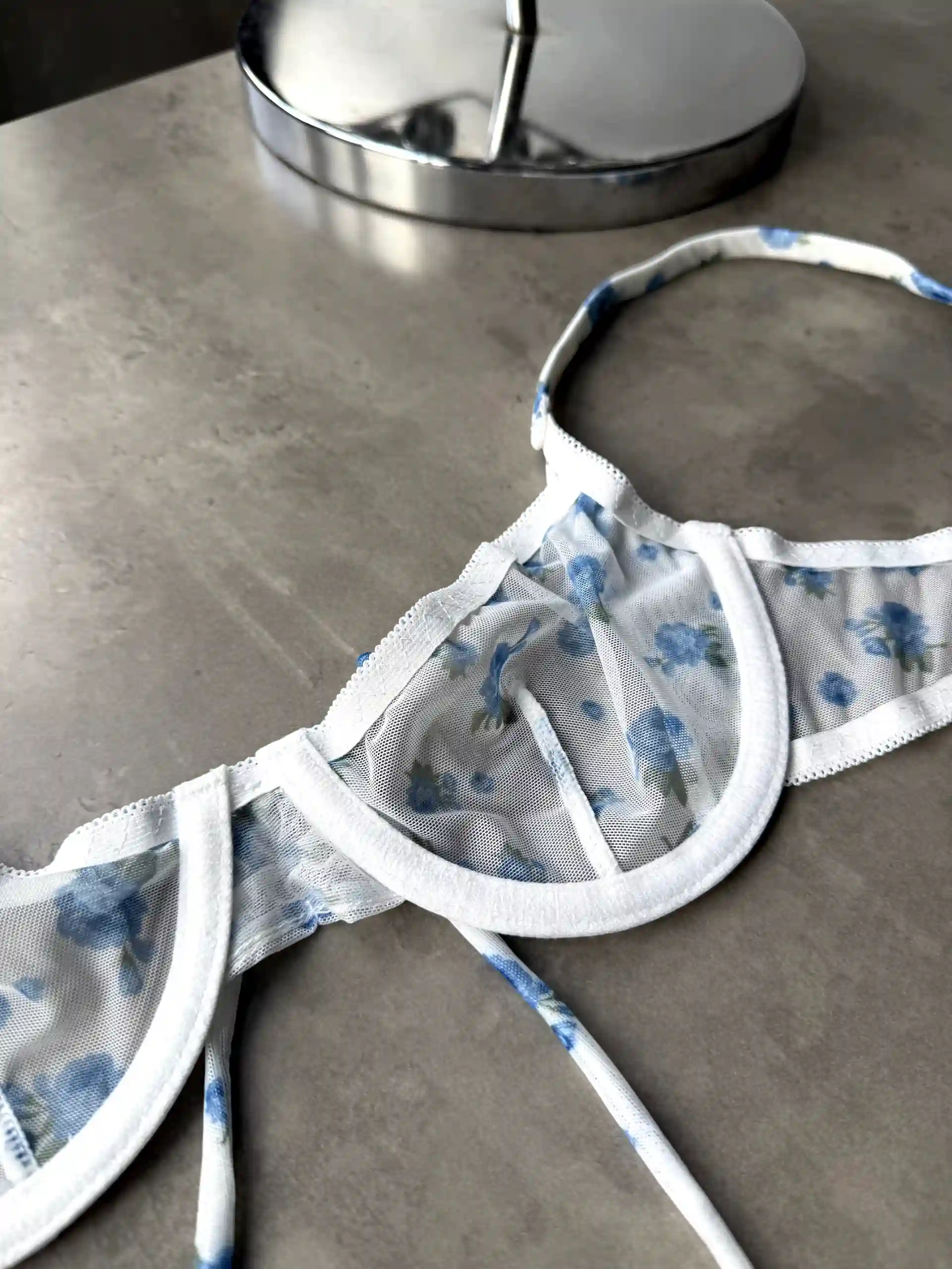 Обидва елементи виконані з м’якої прозорої сітки, прикрашеної ніжним квітковим принтом.