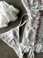 Комплект жіночої білизни – преміум вишивка – перепліт на талії – трусики та панчохи