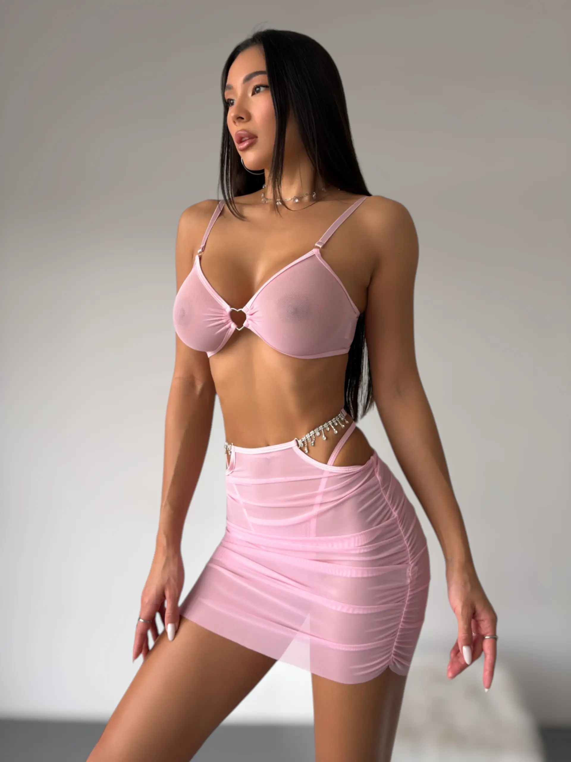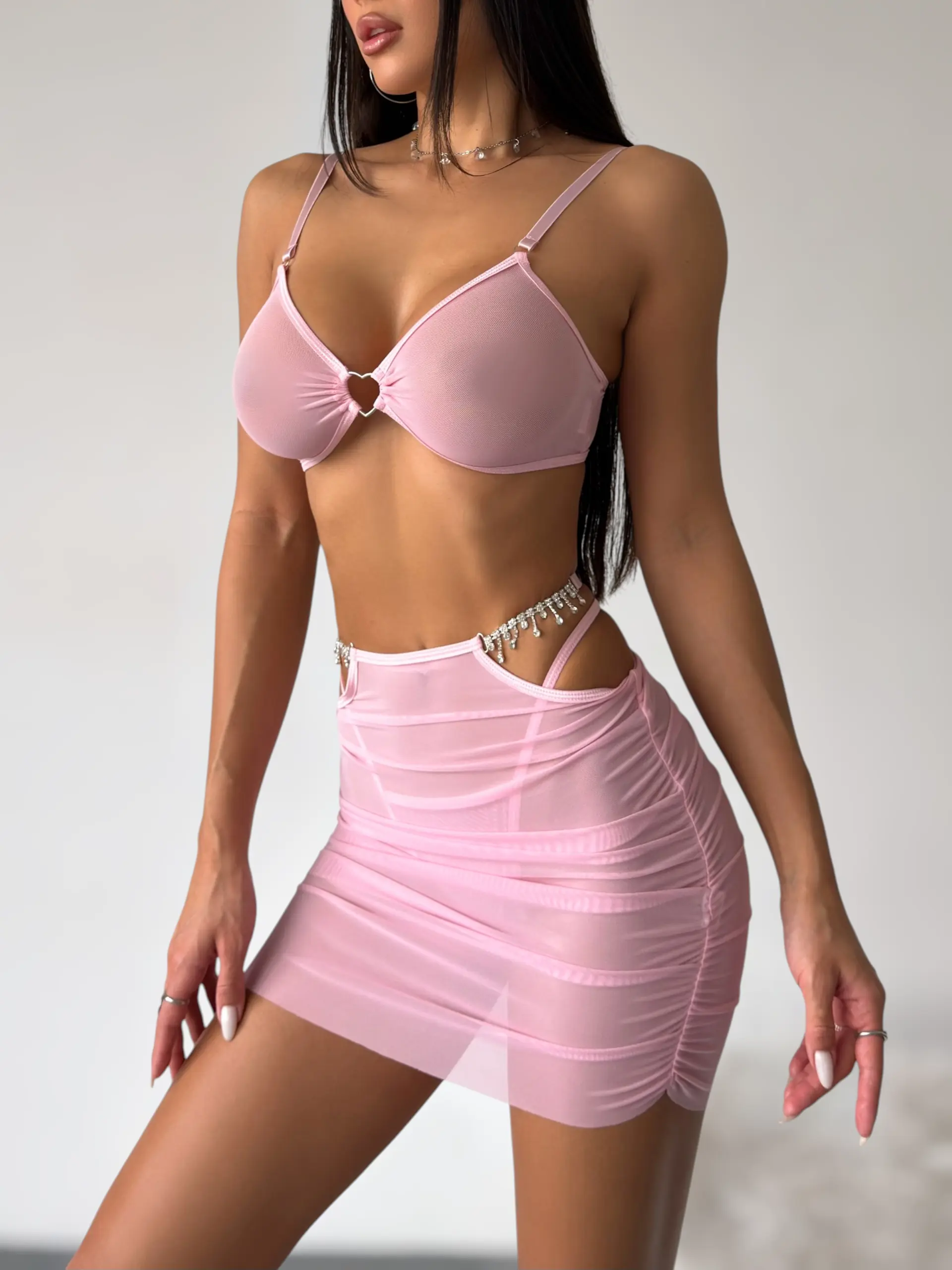 Прозорий рожевий бюст із серцеподібним вирізом у центрі — делікатно підкреслює груди, створюючи грайливий акцент.